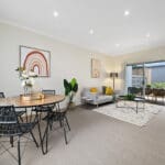 Upon entry you will notice the superbly appointed galley style kitchen which is a perfect place to cook and create. Tiled flooring and great cupboard space. Dishwasher and gas cooking with a tiled splashback and small breakfast bar area for two. Moving through to the spacious open plan living which flows through to the back courtyard area which creates a seamless continuity between inside and out.