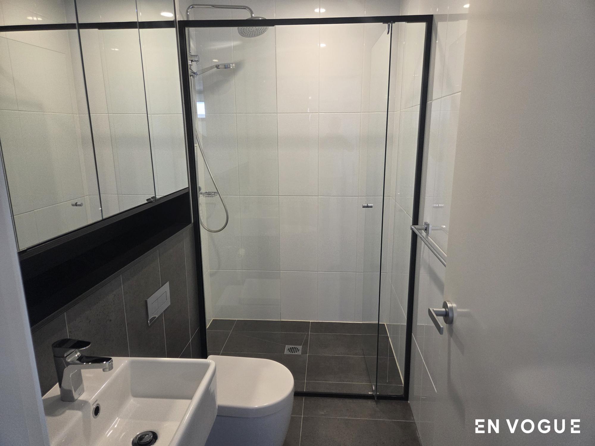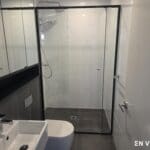 – Bathroom with floor to ceiling tiles